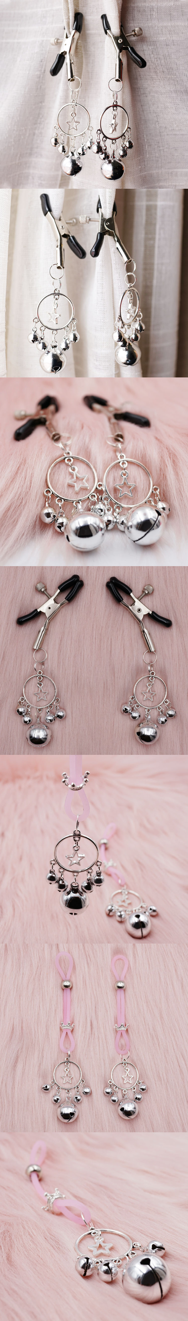 男女情趣用品,可愛又有趣。運用兩個小夾子,夾在乳頭上,乳房的顫動,鈴鐺在胸前的晃動,搖擺晃動時發出清脆的鈴鐺聲音,更能增進狂野刺激,定能撩起無限情慾。