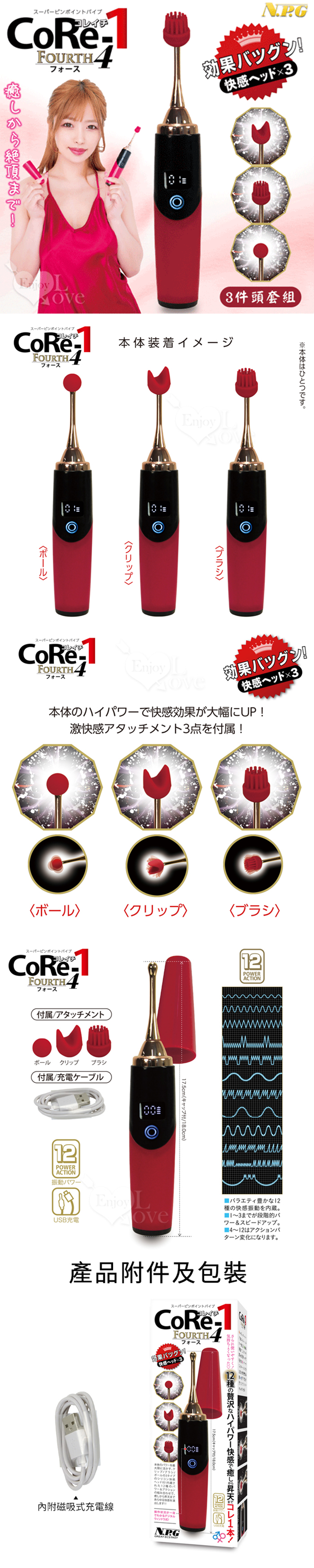 說明: 絶好調超人氣の第4弾! 使用更便利!擁有12種奢華超強勁的快感模式, 一款產品,從放鬆到高潮,應有盡有! 包含三種特殊頭部類型:球形、夾式和刷式。 最大限度地發揮設備威力。 內建1-3檔功率調整和多種快感模式:4-12檔快感模式。 此外,數位視窗讓您一目了然地了解運行狀態! ■ 日本原裝進口 ■ 外包裝裝尺寸:19.7x 7 x3.5 CM ■ 外部重量:114g ■ 產品尺寸:詳如圖 ■ 配件:附專用充電線