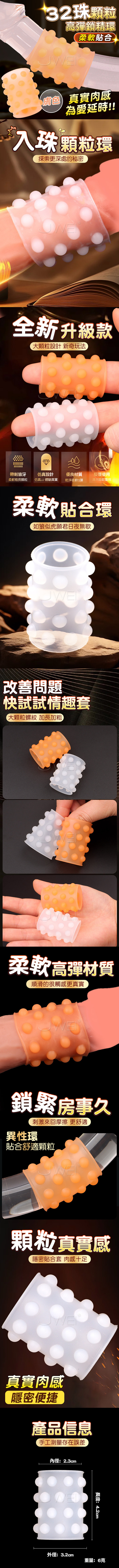 鎖住時間+強化精關+提升摩擦,可增進夫妻、情侶間性福 持續力大大加強,鎖住時間,讓快感來得強烈,顆粒精準按摩,波浪持續不斷 材質:TPE 功能:顆粒刺激,鎖精延時 內容:單入裝