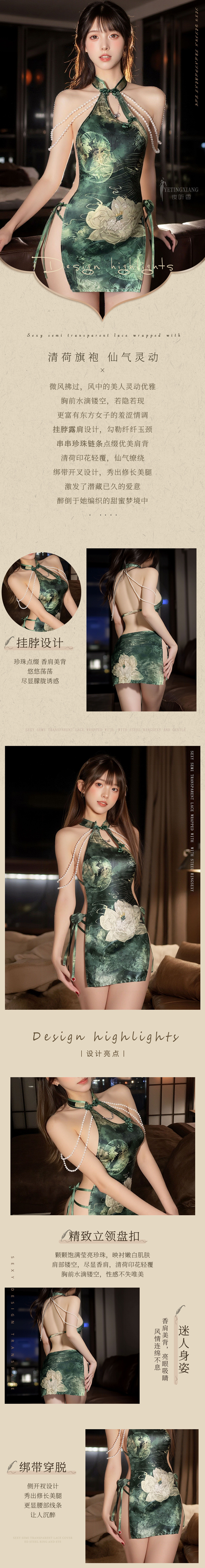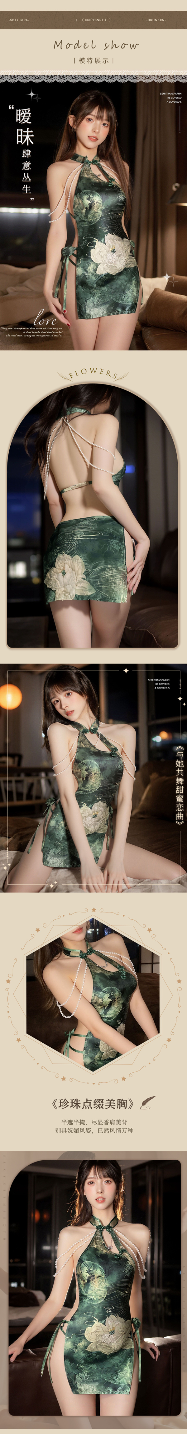 ※ 商品內容:清荷旗袍+T裤 ※ 商品尺寸:FREE SIZE,適穿胸圍32~36吋,適穿腰圍23~29吋。 ※ 注意事項:基於保障消費者個人衛生,此貼身衣物恕不接受退換貨。 (如為商品本身暇疵,接受七日內換貨,請勿試穿,謝謝您) ※ 網頁商品會因為您使用不同的品牌螢幕以及解析度不同,造成圖片顏色呈現會略有不同。