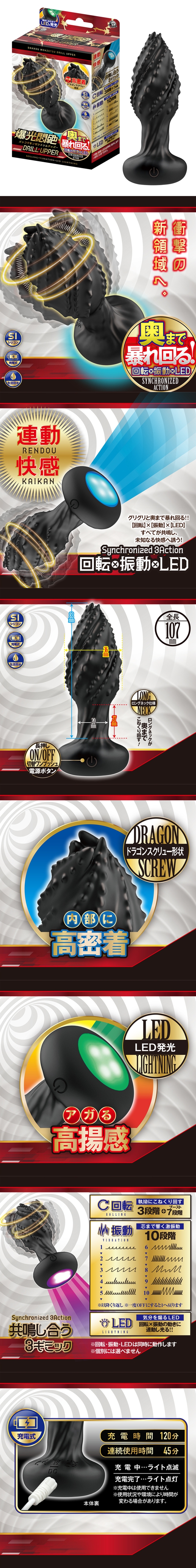 旋轉 × 震動 × LED三大機構同步連動,帶來前所未有的「連動快感」!攻擊性十足的龍捲鑽頭造型,貼合度超高,刺激更集中、更有存在感。再加上長頸結構,能一路深入,對準更裡面的點位反覆「揉、鑽、攪」,爽感層層堆疊。※旋轉、震動、LED 會同時運作※無法單獨選擇其中一種(不能只開旋轉或只開燈/震動)
