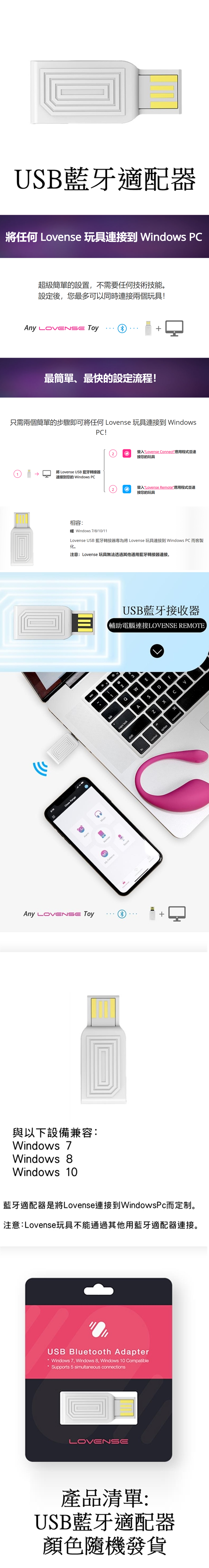 Lovense USB 藍牙轉接器專為將 Lovense 玩具連接到 Windows PC 而客製化。