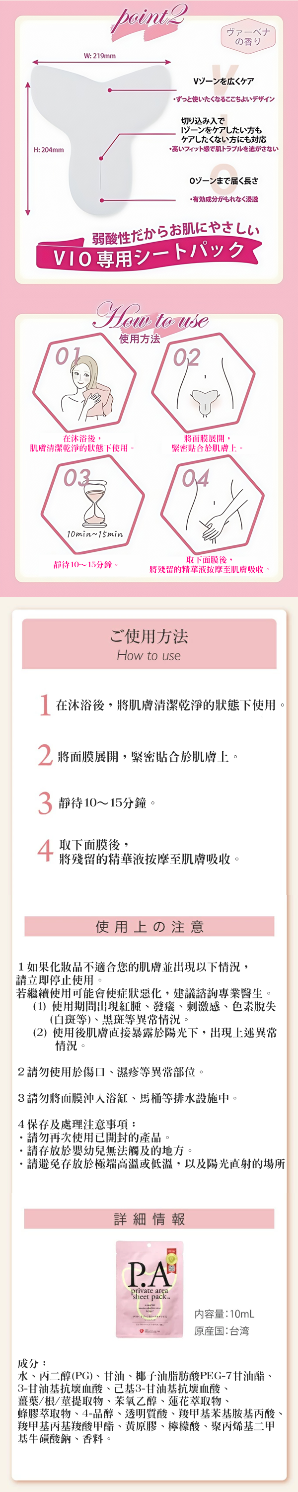 為嬌嫩部位提供全面護理的面膜。VIO獨家面膜,微酸性,溫和呵護肌膚!